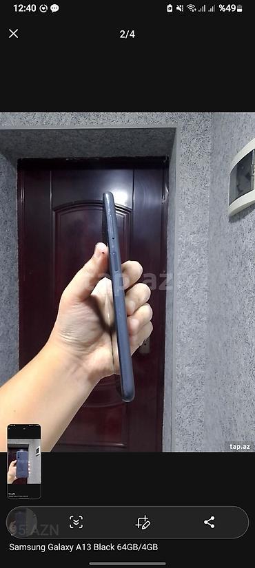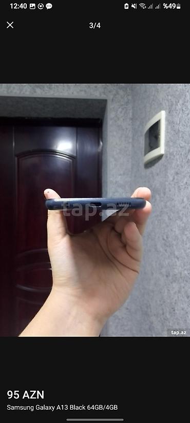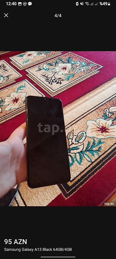 Qiymət şəkillərdə göstərilib: 95 AZN. Model adı şəkillərdə: “Samsung Galaxy A13 Black 64GB/4GB”.