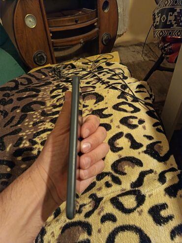 Paket tərkibi şəkillərdə görünən telefon. Ekranda kilid/doğrulama interfeysi və “Adapteri qoş” bildirişi əks olunur.