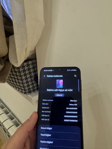 - Şəkillərdə “Telefon haqqında” bölməsində cihaz Galaxy A24 kimi göstərilir.