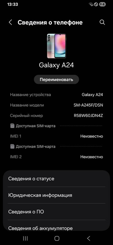 Praktik və sürətli Galaxy A24 gündəlik istifadə, sosial şəbəkə, foto və video üçün ideal seçimdir. Model məlumatları cihaz menyusunda təsdiqlənir: Galaxy A24, SM-A245F/DSN.