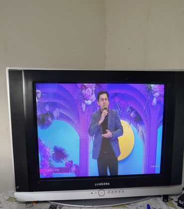 Məhsul: Samsung kineskop televizor Təsvir: - Marka: Samsung - Korpus rəngi: gümüşü - Ön paneldə səs, kanal, menyu və seçim düymələri - Ekran: düz ön şüşəli CRT - Səs sistemi: iki ədəd ön tərəfli g...