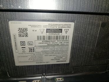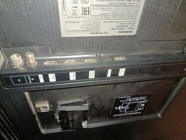 - TV arxa qapağının üzərində orijinal etiket və qoşulma portlarının sahəsi (Samsung markalı).