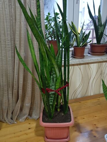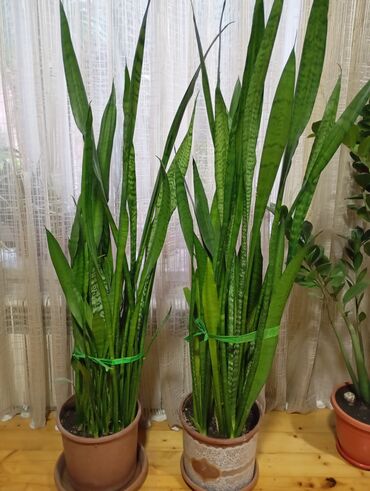 Məhsul: Sansevieria gülü Təsvir: - Dekorativ, hündür yarpaqlı Sansevieria növləri: yaşıl naxışlı və kənarları sarı. - Hər biri plastik, rəngli saksıda, altlığı ilə birlikdə. - Az işıqda belə formu...