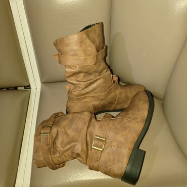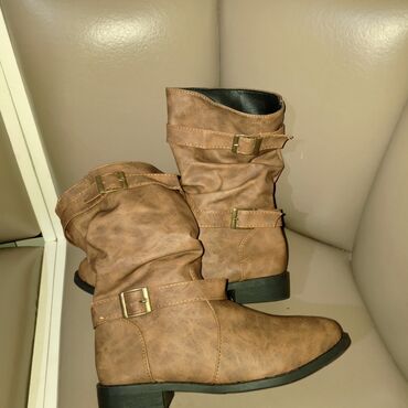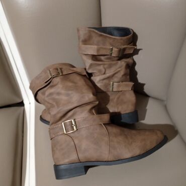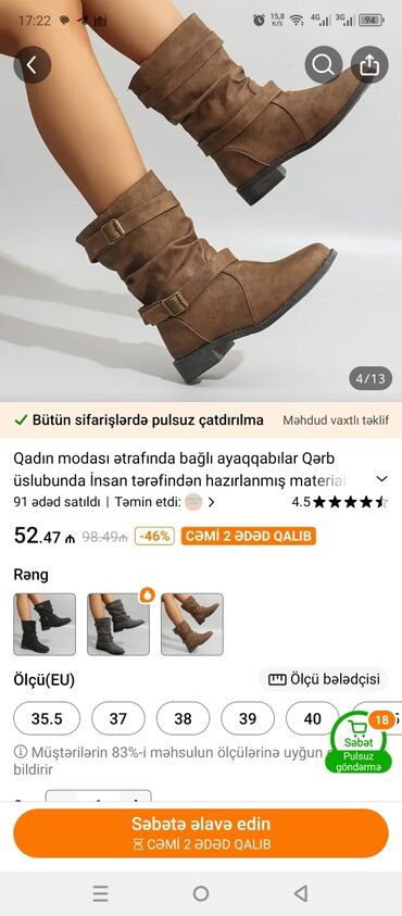 - Model 1: Stud və pərçim detallı, yan hissədə fermuarlı, yumşaq teksturalı material. Ölçü: 38. Ayaqda estetik görünüş verir. Qiymət: 60 manat. Mətndə qeyd: 2 dəfə geyin...
