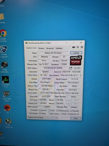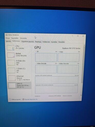 RX 570 8GB Tam işlək vəziyyətdədir, təmirdə olmayıb, vizual problemlər daxil olmaqla heç bir problem yoxdur. Termo pasta tez-tez dəyişilərək istifadə edilib.