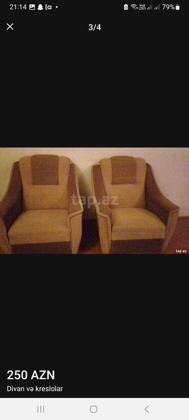 Satılır 200 manat 2 kreslo,1 divan.Heç bir problemi yoxdur.Demək