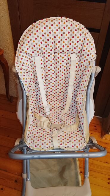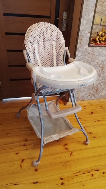 Uşaq yemək stulu – Babyton - Brend: Babyton - Rəng: bənövşəyi/qızılı naxışlı oturacaq, ağ karkas - Funksiya: yemək üçün çıxarıla bilən geniş stolça - 2 ədəd fincan/qab yuvası - Asan yuyulan ha...