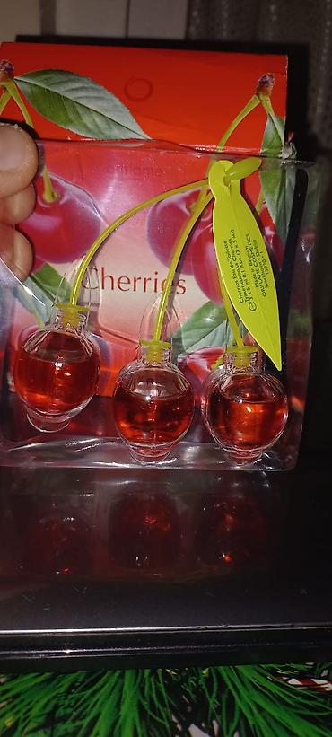 2) Oriflame Cherries – Eau de Toilette. Albalı notlu, 3 ədəd mini flakon seti (hər biri 5 ml; etiketdə 3 × 5 ml göstərilir). Şirin meyvə ətiri gündəlik istifadə üçün uyğundur.