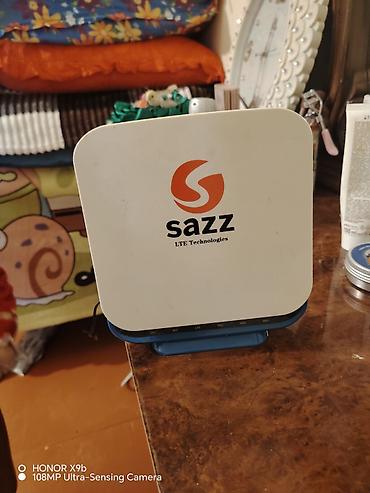 Sazz Wi‑Fi yönləndirici + USB modem Xüsusiyyətlər: - Sazz markalı stasionar Wi‑Fi bazası (router) və üstünə taxılan USB modem - Model (modemdəki etiketə əsasən): ZTE (Sazz üçün brendlənmiş) - Wi‑F...