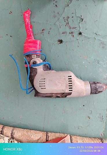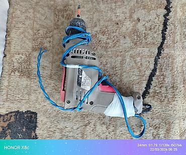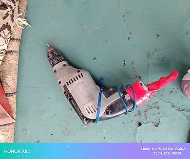 Elektrik qazma (şnurla) - Şəbəkə ilə işləyən elektrikli qazma aləti - Açarla sıxılan metal patron (təqribən 1,5–13 mm burğu uclarına uyğundur) - Yan tərəfdə havalandırma pəncərələri, rahat tutaq h...