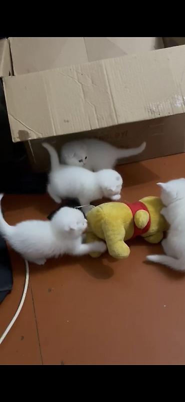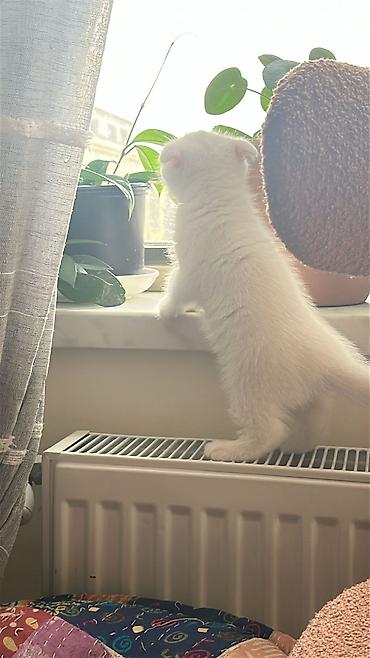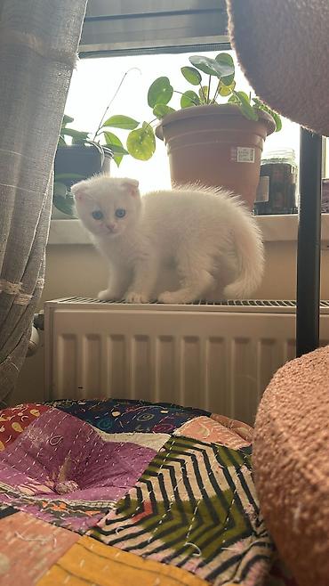 Ağ rəngli Scottish Fold balaları - Cins: Scottish Fold (qulaqları qatlanmış) - Rəng: tam ağ, yumşaq və sıx tük örtüyü - Gözlər: iri və ifadəli - Xasiyyət: sakit, mehriban, qucağı sevən; ailələr və...