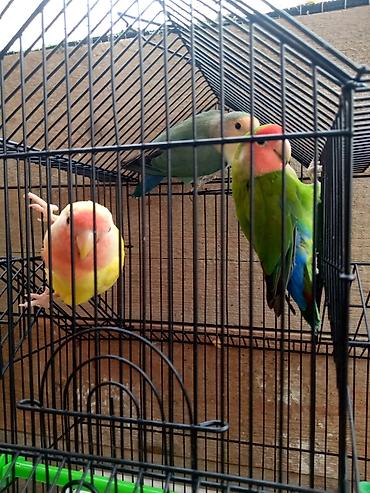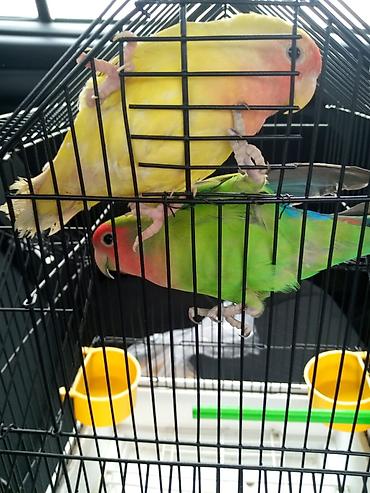 Sevgi quşlari Sevda papağanı (Lovebird) cütü və qəfəs Təsvir: -