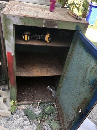 Metal seyf dolab - Material: qalın metaldan hazırlanmış, möhkəm konstruksiya - Rəng: mavi (üstü boyalı) - Ölçülər: təxmini hündürlük 85–95 sm, en 55–65 sm, dərinlik 45–55 sm - Quruluş: tək qapılı ...