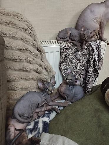 Sfenks cinsindən balaca pişiklər .YİYESİ AZERBAYCANDAN GEDİR DEYE TECİLİ SATILIR. - Cins: Sfenks (tüklüzsüz)anasi elf-dir. - Rəng: tünd şokolad/bənövşəyi çalarları - Balalar sayı: 2 ədəd (şəkillər...