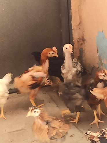 Yarı böyümüş kənd cücələri – müxtəlif rəng və cins qarışığı.