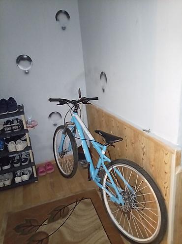 26 Smorsnoy Şəhər və yüngül off-road üçün universal velosiped. Skorostu isleyirr - Çərçivə: yüngül metaldan, mavi-gümüş rəng keçidi - Təkərlər: 26" ölçülü, arxa təkərdə dişli protektor, yol və t...