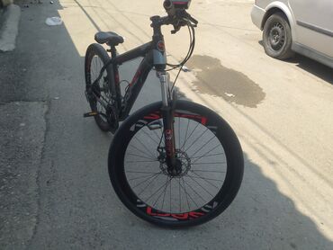 Velosiped satilir 26 liqdi hec bir problemi yoxdubela veziyetdedi sekildede gorunuyu kimi tekerlerin ikisde en yaxslarindan qoyulub kamerleri tezedi tormuzlari islekdi arxa skorusu islekdi bir orta...
