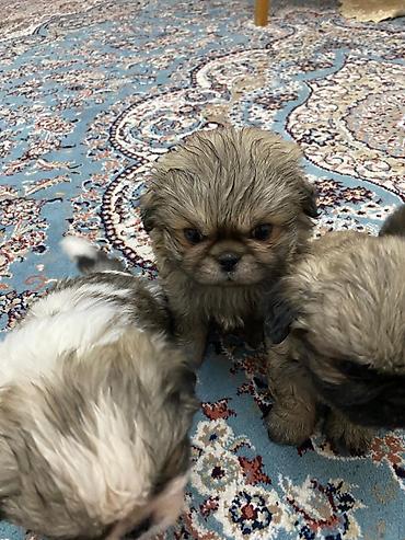 Pekin balaları – 2 ədəd • Cins: Pekingese (Pekin iti) • Yaş: bala • Rənglər: krem-bej və tünd qəhvəyi tonlar • Xüsusiyyətlər: yığcam bədən quruluşu, qısa burun, sıx və yumşaq tüklər, iri ifadəli g...