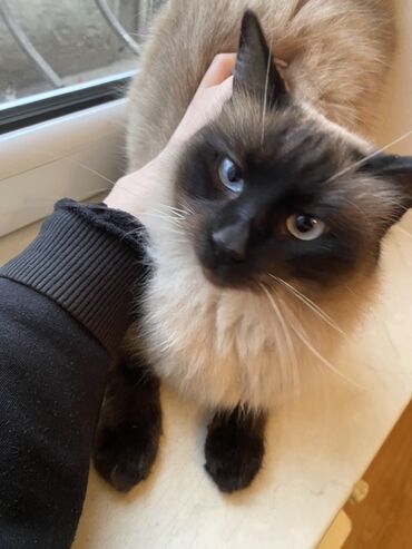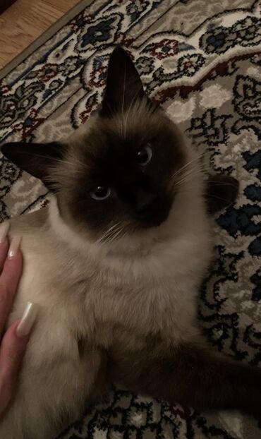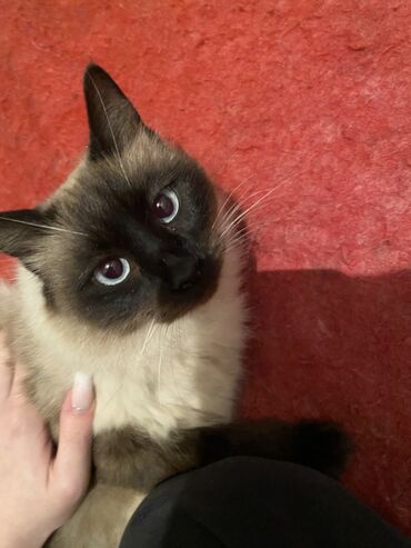 - Fotoşəkillərdə real pişik göstərilib: tünd “maskalı” üz cizgiləri və mavi gözləri ilə tipik siam rənglənməsi.