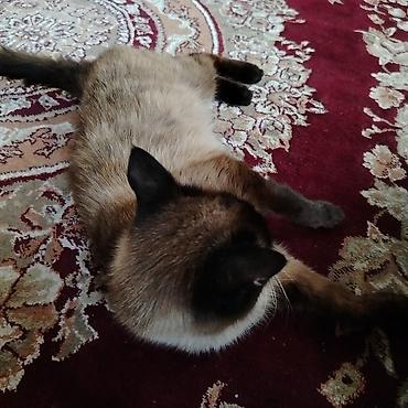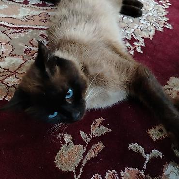 Siam rəngli, mavi gözlü ev pişiyi. Xüsusiyyətlər: - Rəng: krem bədən, tünd qəhvəyi maska, qulaqlar, pəncələr və quyruq - Gözlər: parlaq mavi - Qısa, sıx və ipək kimi tüklü örtük - Zərif, yığcam bə...