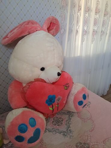 Böyük ölçülü plyuş ayı oyuncaq her biri 200 azn,real aliciya endirim olacağ,2 aydi özume hediyye olunub,başqa ölkeye köcurem deye satiram. - Rəng: açıq çəhrayı - Material: yumşaq plyuş parça, dold...