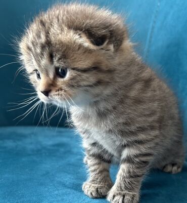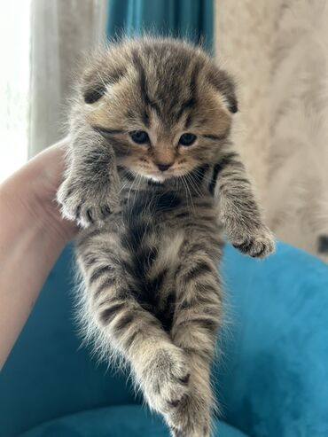 Scottish fold miks Xüsusiyyətlər: - Yaş: baladır (yeni doğulmuşdan bir qədər böyük) - Rəng: ağ-boz-qara qarışıq, pəncələri və sinəsi ağ - Qulaqlar yumuşaq aşağı əyimli, gözləri iri və mavi-boz t...