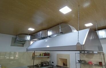 Sənaye mətbəxləri üçün paslanmayan və ya sinklənmiş metaldan hazırlanmış aspirasiya sistemləri və havalandırma başlıqları.