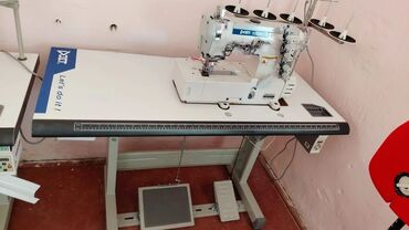 - Çoxyunlu tikiş maşını: DOIT sənaye tipli, trikotaj və elastik parçalar üçün uyğundur. 5 iplik üçün iplik dayaq qülləsi, geniş iş masası, dəqiq ölçü xətti, güclü işıqlandırma və pedallı idarəetmə ilə. Masanın kənarında aksesuar gözü mövcuddur.