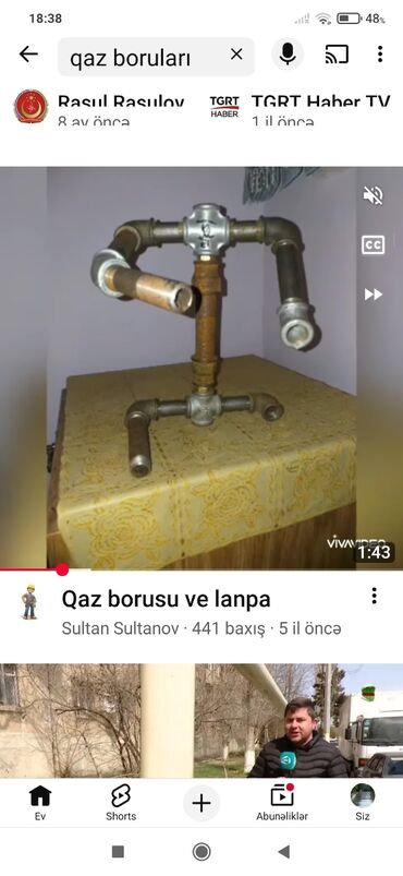 Sənaye üslublu masaüstü lampanın korpusu – qaz borusu fitinqlərindən yığılmış dekorativ model.