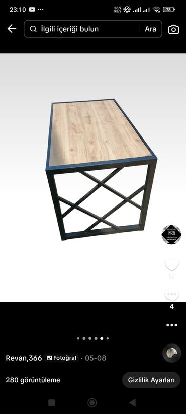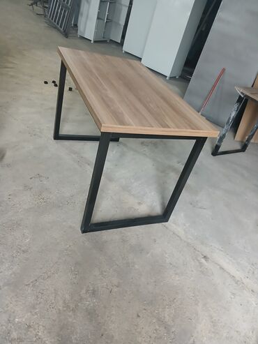 - Material: üst hissə ağac fakturalı laminat/MDF, karkas isə qara rəngli metal profildən.