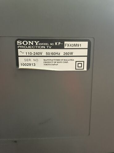 Sony arxa-proyeksiyalı televizor - Brend: Sony - Tip: Arxa-proyeksiya (RPTV), iri diaqonallı ekran - Korpus: Gümüşü-szərhı ön panel, inteqrə edilmiş geniş ön akustik barmaqlıq - İdarəetmə: Ön şaqu...