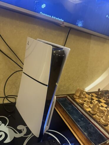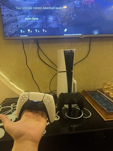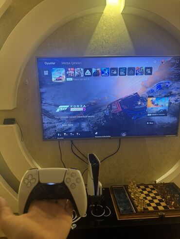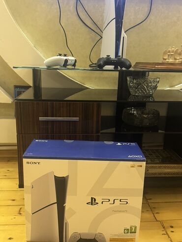 Ekran görüntülərində PS5 interfeysi görünür, konsol işlək vəziyyətdədir. Qutusu mövcuddur.