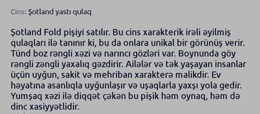 - Cins: Şotland yastı qulaq (Şotland Fold)