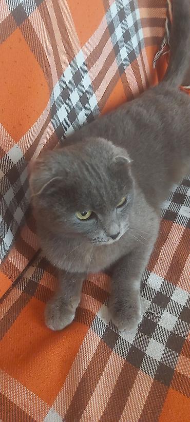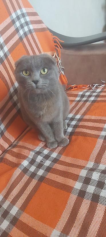Skottiş Fold pişiyi – boz (gümüşü-boz) rəng, qısa və sıx tüklü örtük, iri sarı-yaşıl gözlər, yığcam bədən quruluşu. Qulaqlar önə doğru qatlanan tipik Fold forması ilə seçilir. Sakit və mehriban xasiyyət, ev şəraitinə tez uyğunlaşma, insanlarla ünsiyyəti sevir. Təmizliyə alışqın, qum qabından istifadə edir. Dırnaq itiləmə üçün skreçerə yönləndirilə bilir. Yeməkdə seçici deyil, quru və yaş yemlə qidalanmaya uyğun. Düzgün qulluq üçün: