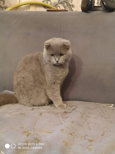 Şotland pişiyi satılır. 1 yaş yarım. üstündə oyun qutusu tualeti,darağı şampunu topu bu əşyaları 30-35manadir. üstündə verilir peyvendleri olunub. Qurd dərmanı verilib. temiz ev pişiyi dir. sakit s...