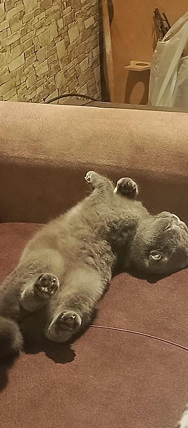 Britan Şotland qıvrıqqulaq (Scottish Fold) balası – tünd bozumtul (blue/grey) rəng. Xüsusiyyətlər: - Yumşaq, sıx tüklü, qısa xəz - Yarıq-yuvarlaq baş forması, yığcam bədən quruluşu - Qıvrıq, irəli...