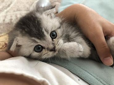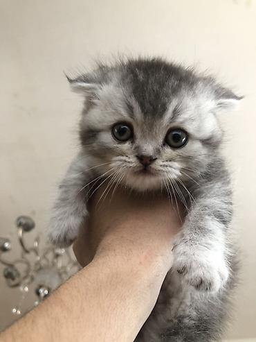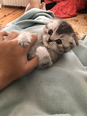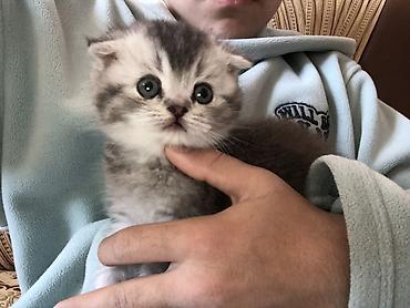 Şotland balası 1 ay 10 günlükdür. saf qan cins pişiklərdir. Ata və ana şotlanddır. - Rəng: gümüş-boz (silver tabby tonlarında) - Qulaqlar: tipik qıvrım, başa yaxın - Gözlər: iri, yumru - Tük quru...
