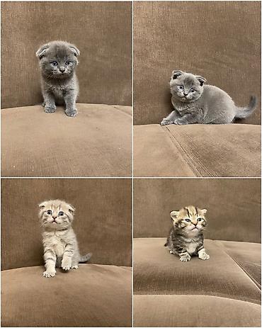 Şəkillərdə göstərilən balalar yumşaq paltarlı, kürək üstə oynamağı sevən, mehriban Scottish Fold balalarıdır. Ailə evinə sevinc və sakitlik gətirəcək ideal ev heyvanlarıdır.
