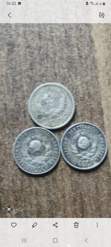 Sovet dövrünə aid xırda qəpiklər dəsti - Nominal və illər: 10, 15 və 50 kopek - Görünən buraxılış illəri: 1950, 1954, 1961, 1965, 1966, 1967, 1969, 1970, 1981, 1984, 1986, 1987, 1988 və s. - Mater...