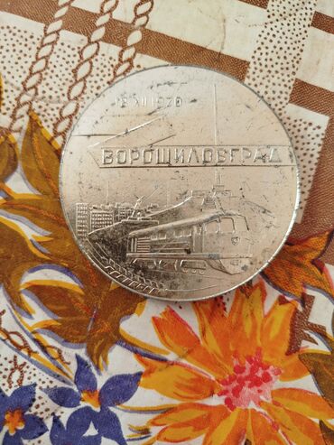 - “В память о награждении городов орденом Октябрьская революция” xatirə medalı. Bir üzündə Oktyabr İnqilabı ordeninin relyefi və yazı, digər üzündə “Ворошиловград” (bugünkü Luhansk) yazısı, sənaye panoraması və lokomotiv təsviri. Metal rəngli (gümüşü ton), dairəvi forma.