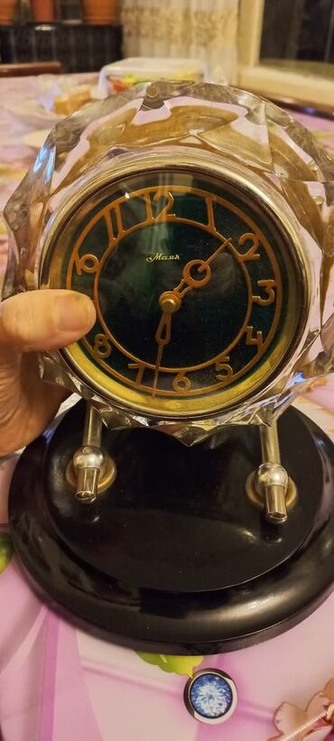 - “Маяк” masa saatı – büllurvari korpus, qızılı rəqəmlər və siyah dayaq. Sovet istehsalı mexaniki saat. Qiymət: 1000 manat (şəkildə göstərilib).