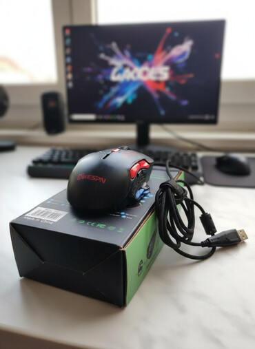 MeeTion GM20 oyun mouse-u - Xromatik RGB işıqlandırma: gövdə boyunca və skroll təkərində dinamik rəng effekti - Proqramlaşdırıla bilən düymələr: yuxarıda DPI keçid düyməsi, sol yan paneldə 2 əlavə...