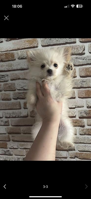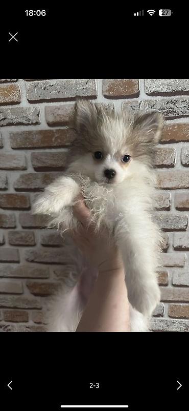 Pomeranian tipli kiçik ölçülü dekorativ it balası - Rəng: qar kimi ağ, qulaqlarında açıq krem tonları - Örtük: sıx və yumşaq, uzun tüklü, şirni “boo” görünüşü - Gözlər: iri və tünd - Qulaqlar: dik...