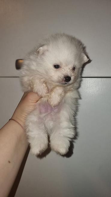 Pomeranian (Spitz) balaları - Cins: Pomeranian (Spitz tipli dekorativ it) - Rəng: qar ağ (krem çalarları ilə) - Yaş: yeni doğulmuş balalar (gözləri açılıb, sərbəst addımlamağa başlayırlar) - Cinsi...