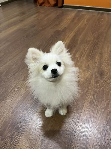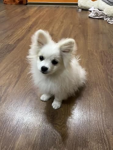 Məhsul: Pomeranian (Spitz) balası – ağ rəng Xüsusiyyətlər: - Tam ağ, sıx və yumşaq ikiqat tük örtüyü; kiçik, kompakt bədən quruluşu - Qara, parlaq gözlər və qısa, dik qulaqlar; kiçik düymə burun -...