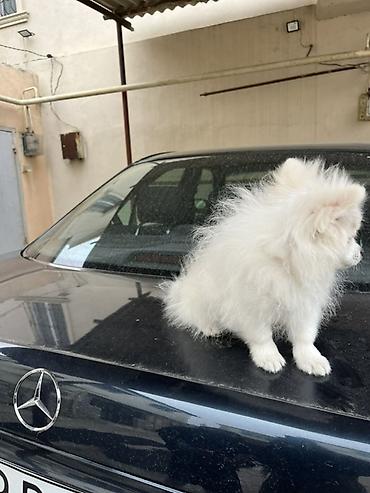 Elan: Pomeranian Spitz balası - Yaş: 3 aylıq - Qiymət: 350 m(real alıcı endirim) Xüsusiyyətlər: - Miniatür ölçülü, ağ tüklü Pomeranian Spitz - Yumşaq, sıx və həcimli kürk, dik qulaqlar, qısa buru...