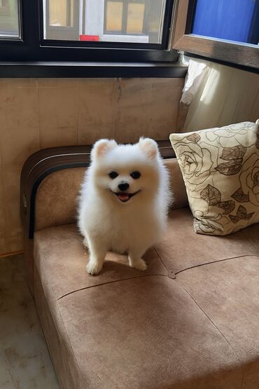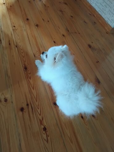 Ağ rəngli kiçik ölçülü Spitz/Pomeranian tipli ev iti REAL ALICIYA ENDIRIM EDECEM tecili satilir