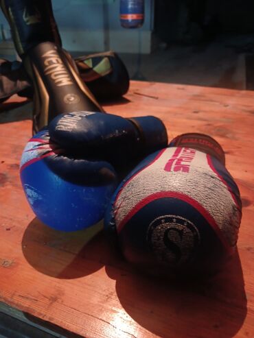 Boks əlcəkləri – 2 cüt - Rənglər: qırmızı və mavi (mavi cütdə ağ-qırmızı detallarla) - Üzərində “Professional” yazısı - Bilək hissəsində geniş yapışqan bağlama – möhkəm fiksasiya və sürətli taxıb-...
