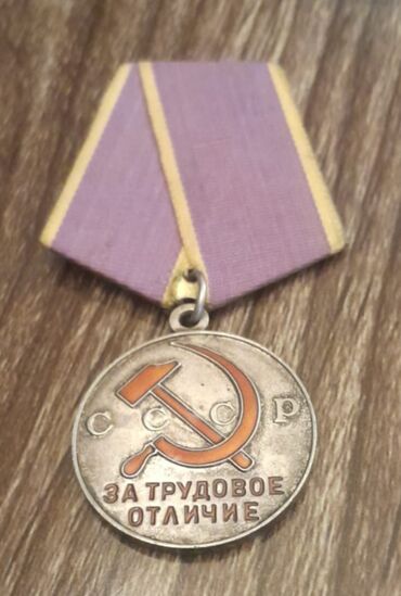 - Ön tərəf: oraq-çəki simvolu, “СССР” yazısı və “ЗА ТРУДОВОЕ ОТЛИЧИЕ” (Əməkdə Fərqlənməyə görə) yazısı