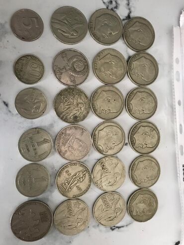 Məhsul: Mix kolleksiya – müxtəlif ölkələrin köhnə pul sikkələri və nişanlar Tərkib: - SSRİ dövrünə aid sikkələr: 1 rubl (1991), 20 kopek, 50 kopek və digər nominallar; üzərində “СССР” yazılı temat...